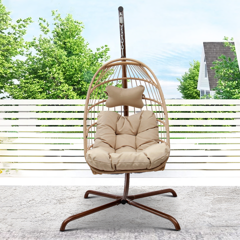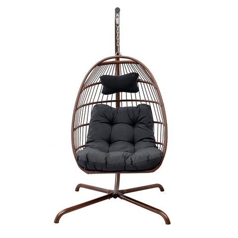 Katlanabilir Modern kahverengi bahçe hasır mobilya açık veranda ön sundurma Rattan Metal asılı koltuk sandalye ile standı