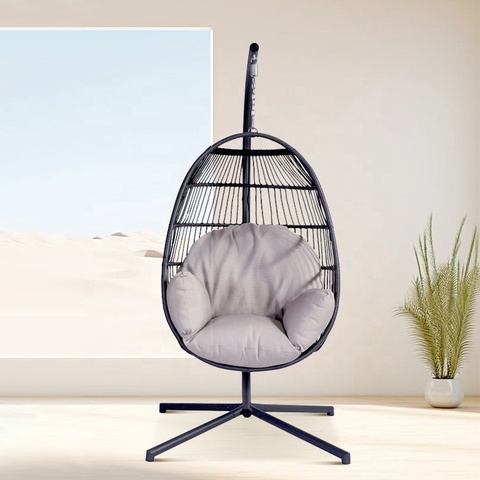 Katlanabilir Modern balkon veranda ön sundurma hasır mobilya açık bahçe Rattan salıncak yumurta sandalye standı ile