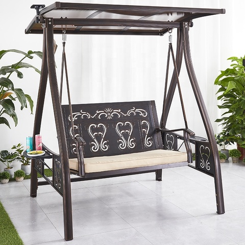 Modern eğlence ön sundurma bahçe mobilyaları açık veranda bahçe döküm alüminyum çift 2 kişi salıncaklı sandalye