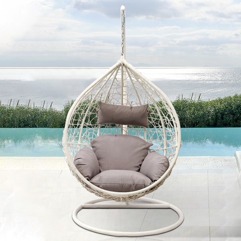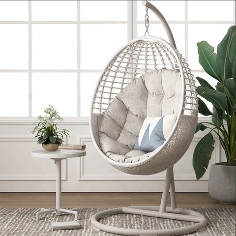 Beyaz Modern bahçe ön sundurma hasır mobilya açık veranda Metal Rattan yumurta salıncaklı sandalye standı ile