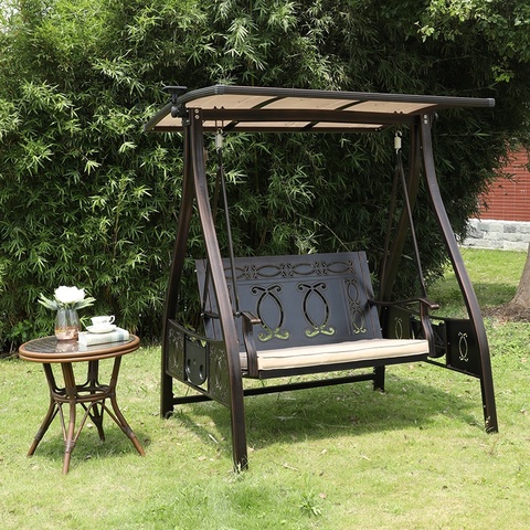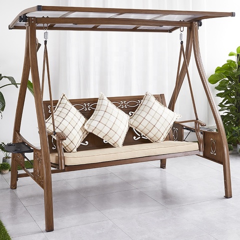 Modern kahverengi ön sundurma bahçe mobilyaları açık veranda 3 kişilik kişi Cast alüminyum salıncak asılı sandalye